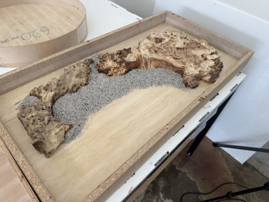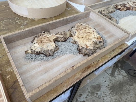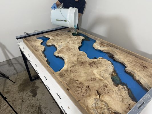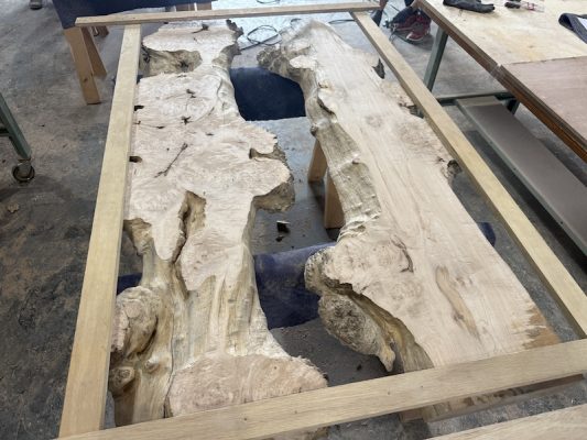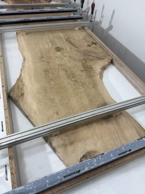 丁寧に流し込み、この一枚板の魅力を最大限に生かす作品を製作して行きます!