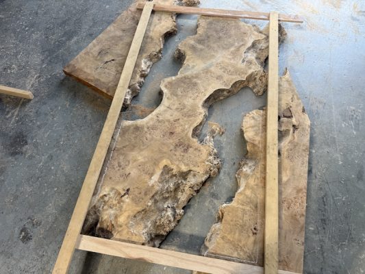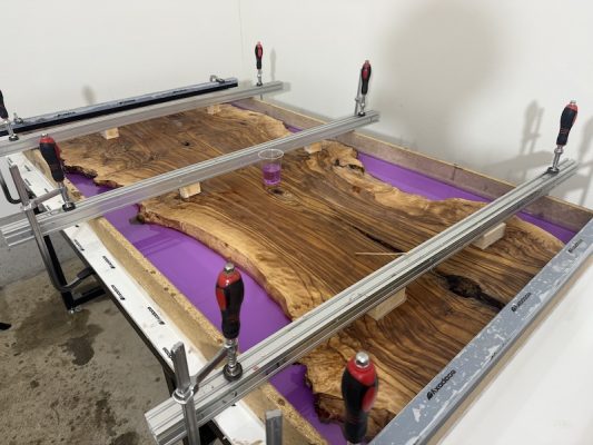まずは持ち込み一枚板でのレジンテーブル製作!