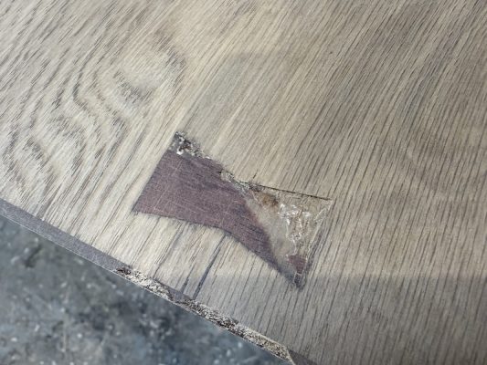 今回お預かりした一枚板を高周波プレスにかけ、反りを矯正し、天板面の研磨を最低限にとどめて作業したのですが、