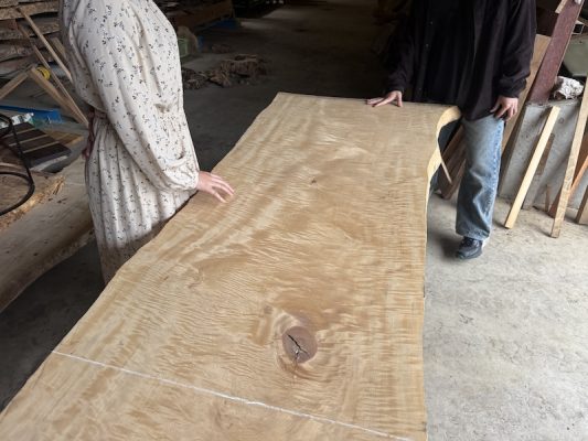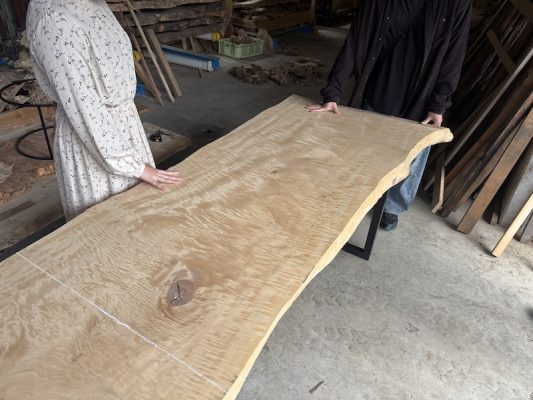 一枚板でお越しいただいたお客様が、栃一枚板を気に入ったいただいたのですが、ほんの少し幅が狭い!