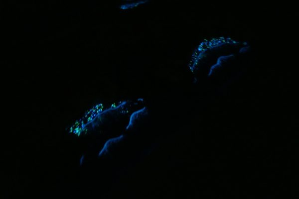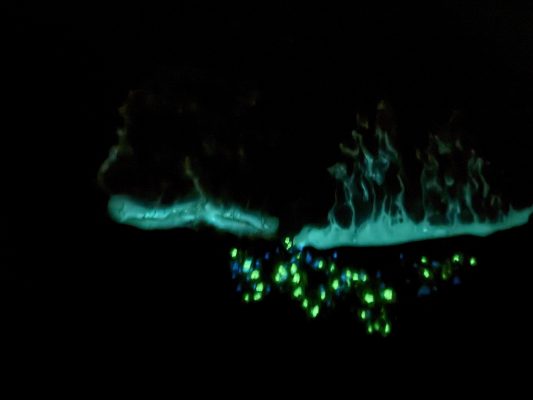 ですが、蓄光材を十分量入れると波の演出が普段の自然な波と全く異なるデザインになります。