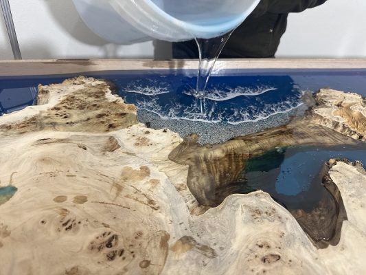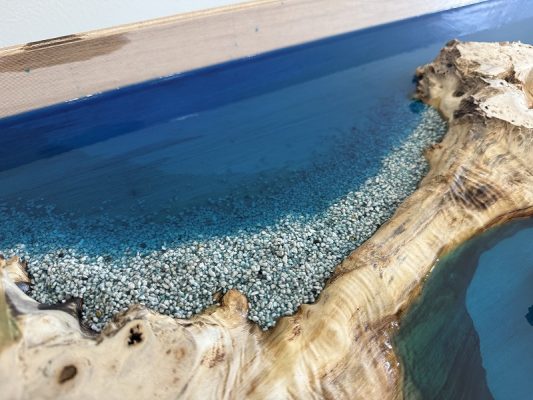実はOceanレジンテーブルで演出するこの波も実はレジンで、線上にしたレジンをヒートガンで伸ばして波の演出をしております。