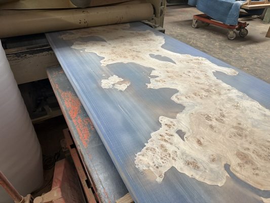1cmほどでブルーの演出をする為、少しの厚みの違い・色の違いでブルーの演出が変わるため、いつも事前にローテーブルを製作します。