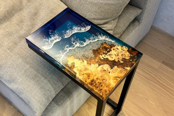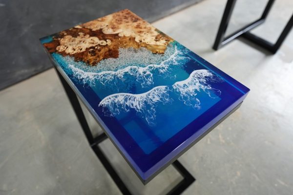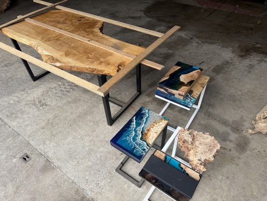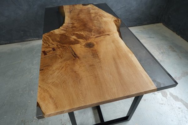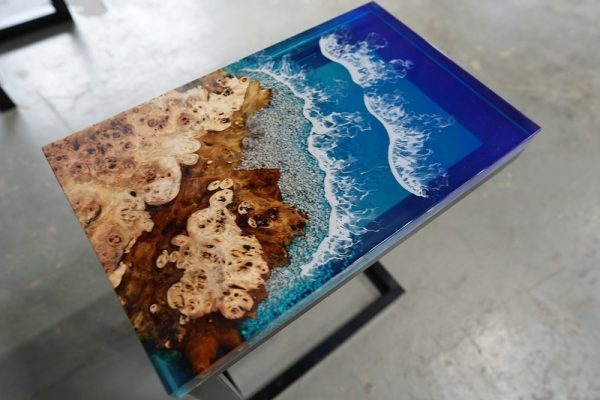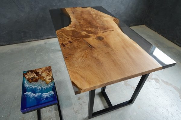 そんななか数年前にレジンデーブルを目にすることがありレジンの透明感と木の美しさに魅了されました。