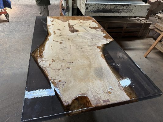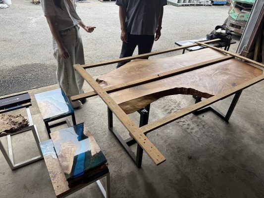 本日はナラ一枚板を持ち込みいただき、レジンテーブル製作させてただいた様子をご紹介させていただきます。