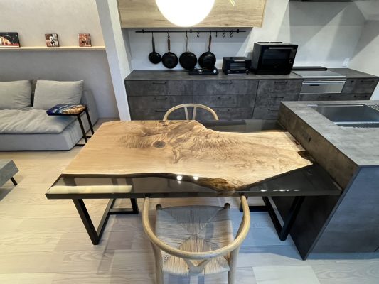 20年前に入手した一枚板のテーブルを家を新築するにあたりレジン加工して頂きました。